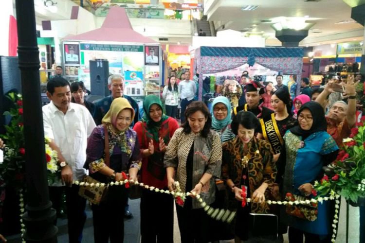 Ketua Tim Penggerak PKK Kota Semarang, Krisseptiana Hendrar Prihadi didampingi Kepala Dinas Koperasi dan UMKM Kota Semarang, Litani Satyawati memotong pita sebagai simbol dimulainya Semarang Gemerlap Expo 2018.. ©2016 Merdeka.com