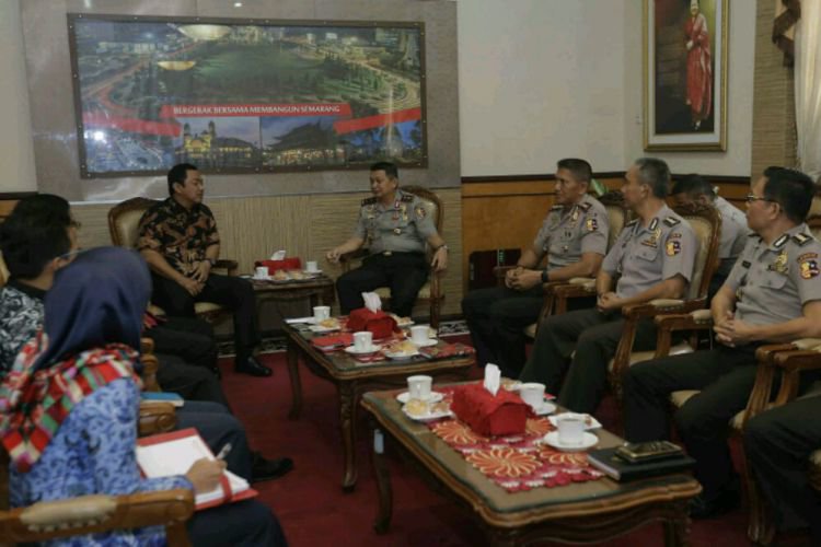 Wali Kota Semarang Hendrar Prihadi saat menemui Gubernur Akpol Irjen Rycko Amelza Dahniel di ruangannya, Selasa (17/4).. ©2016 Merdeka.com