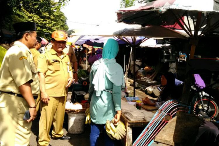 Kepala Dinas Perdagangan Kota Semarang Fajar Purwoto saat melakukan mapping untuk tempat relokasi pedagang Pasar Wonodri Baru, Senin (26/2).. ©2016 Merdeka.com
