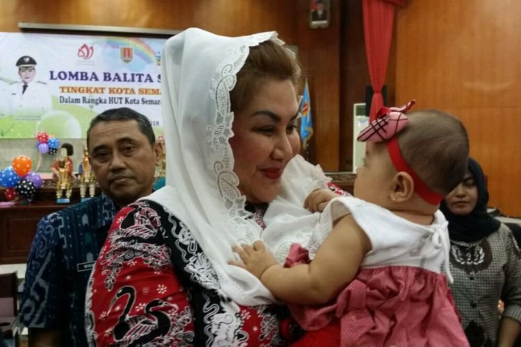 Wakil Wali Kota Semarang Hevearita Gunaryati Rahayu menggendong bayi saat acara lomba balita sehat, belum lama ini.. ©2016 Merdeka.com