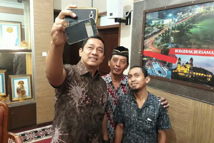 Wali Kota Hendi berfoto bersama Agus, usai memberikan penghargaan atas dedikasinya menjaga kebersihan lingkungan.. ©2016 Merdeka.com