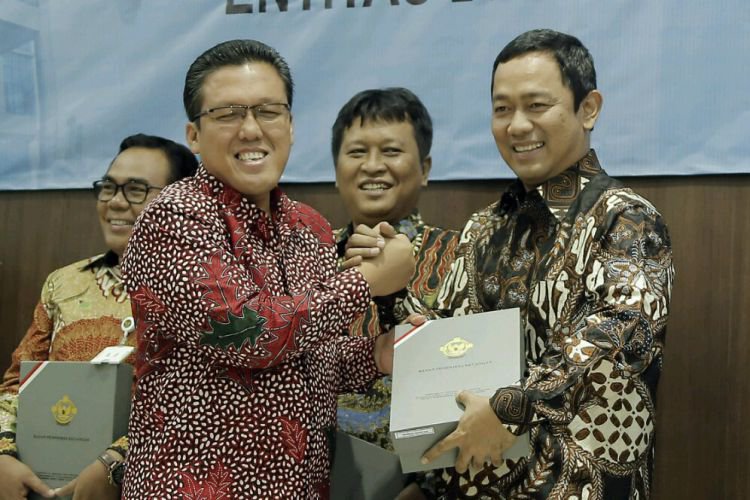 Kepala BPK Perwakilan Provinsi Jawa Tengah, Hery Subowo memberikan opini WTP kepada Wali Kota Hendi atas LKPD Kota Semarang Tahun Anggaran 2017.. ©2016 Merdeka.com