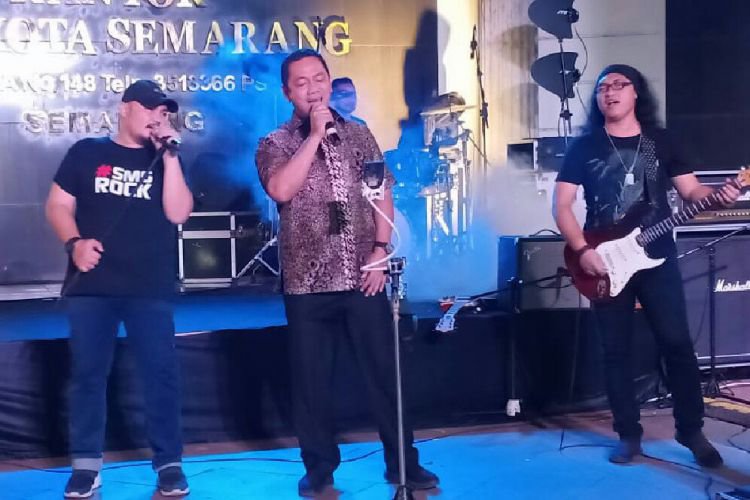 Merdeka.com, Semarang - Wali Kota Semarang Hendrar Prihadi tampil memukau dalam acara Urban Street Music yang digelar di depan Kantornya, Jalan Pemuda Kota Semarang, beberapa waktu lalu. Wali Kota yang akrab disapa Hendi ini tampil dan menunjukkan kebolehannya di dunia tarik suara.