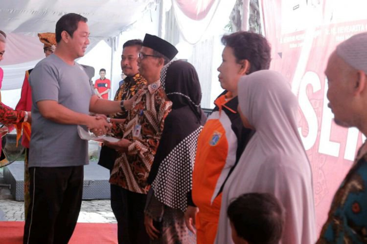 Wali Kota Semarang Hendrar Prihadi memberikan sertifikat tanah kepada warga Kota Semarang, Jumat (8/2).. ©2016 Merdeka.com