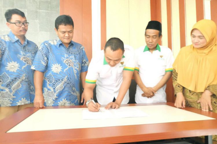 Ketua Baznas Kota Semarang Arnas Agung menandatangani kerjasama dengan Gapensi. ©2016 Merdeka.com