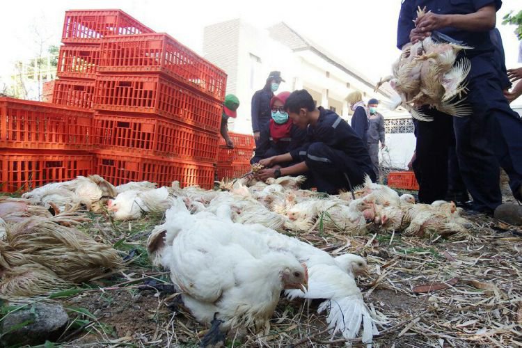 Sejumlah peternak menyiapkan ayam yang akan dibagikan gratis kepada masyarakat di halaman Kantor Dinas Pertanian Kota Semarang.. ©2016 Merdeka.com