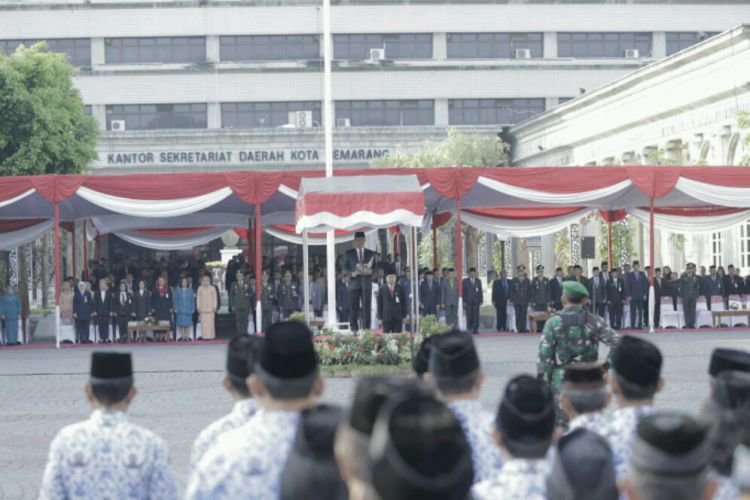 Wali Kota Semarang Hendrar Prihadi memimpin upacara peringatan hari Kesaktian Pancasila, Senin (1/10).. ©2016 Merdeka.com