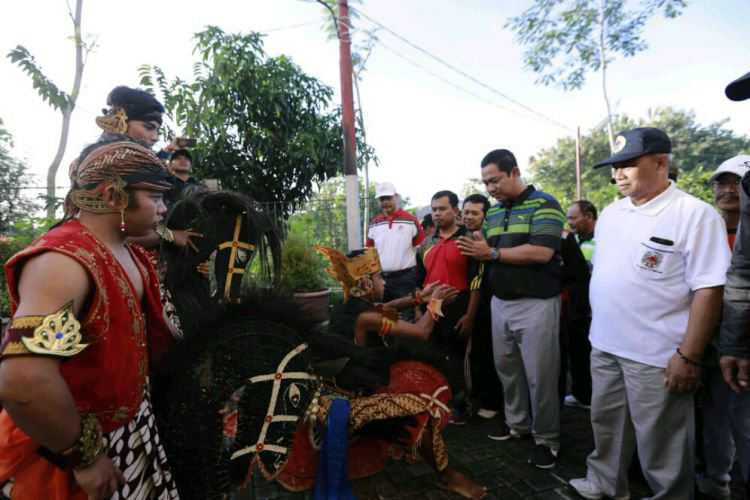Wali Kota Semarang Hendrar Prihadi berinteraksi dengan warga usai jalan sehat di Kelurahan Tembalang, Rabu (5/4).. ©2016 Merdeka.com