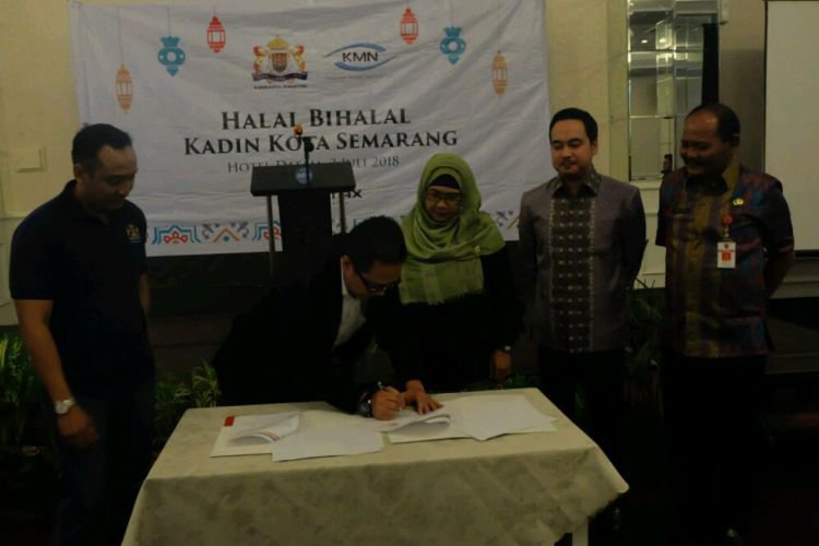 Ketua Kadin Kota Semarang Arnaz Agung Andrarasmara menandatangani kerjasama untuk memfasilitasi pelaku Usaha Mikro dan Kecil (UKM) dengan Hotel Dafam.. ©2016 Merdeka.com