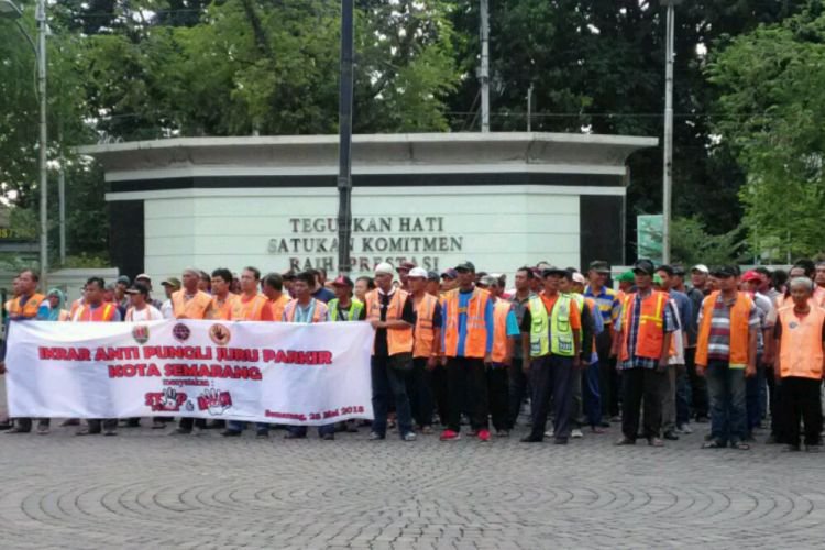 Sejumlah juru parkir Kota Semarang disumpah untuk tidak melakukan perbuatan melanggar hukum termasuk menarik biaya parkir melebihi Perda.. ©2016 Merdeka.com
