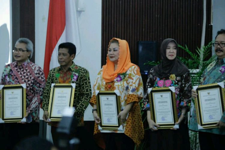 Wakil Wali Kota Semarang, Hevearita G Rahayu mewakili Wali Kota Semarang Hendrar Prihadi menerima penghargaan STBM Berkelanjutan dari Kementerian Kesehatan di Auditorium Siwabessy, Kantor Kementerian Kesehatan di Jakarta, Kamis (18/10).. ©2016 Merdeka.com