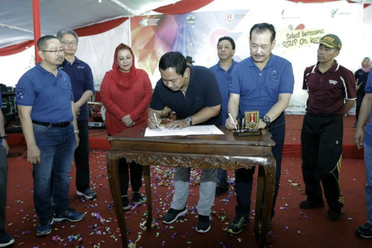 Wali Kota Semarang Hendrar Prihadi menandatangani nota kesepahaman dengan RSUP Dr Kariadi terkait pelayanan darurat jantung.. ©2016 Merdeka.com