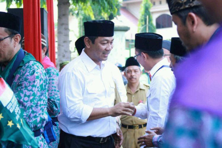 Wali Kota Semarang Hendrar Prihadi melepas para calon jamaah haji asal Kota Semarang di Islamic Center Manyaran, Senin (6/8).. ©2016 Merdeka.com