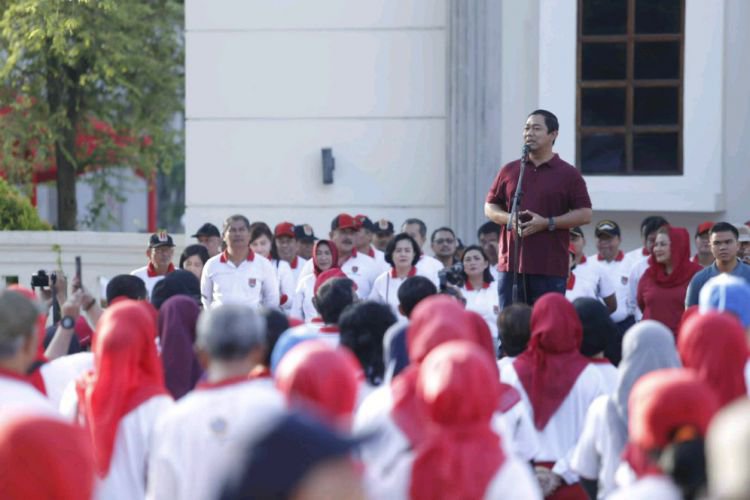 Merdeka.com, Semarang - Wali Kota Semarang Hendrar Prihadi melakukan senam bersama dalam rangka memperingati Hari Lanjut Usia Nasional (HLUN) ke-23 tahun 2019 tingkat Kota Semarang di Jalan Pemuda, Minggu (7/4). Senam bersama berlangsung meriah, dengan peserta kurang lebih 2.700 lansia.