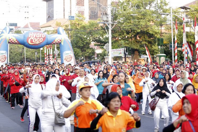 Ribuan warga Kota Semarang mengikuti senam poco-poco di Halaman Balai Kota Semarang, Minggu (5/8).. ©2016 Merdeka.com