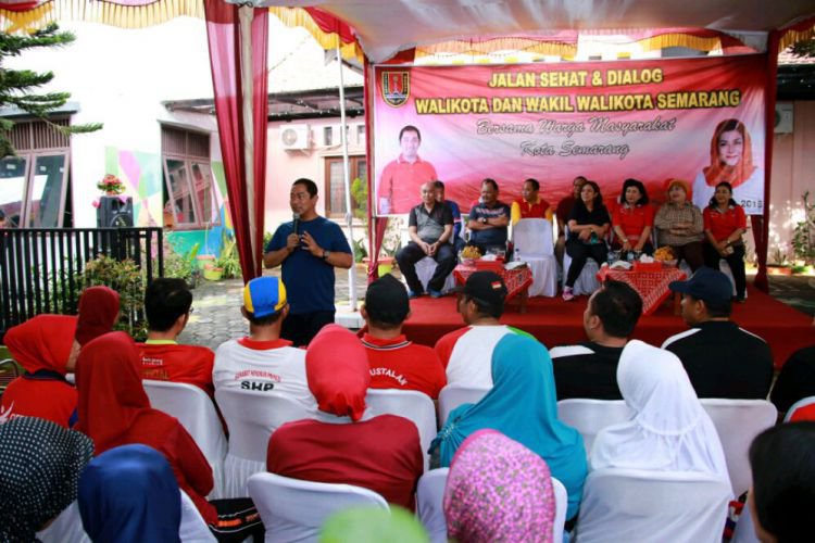 Wali Kota Semarang Hendrar Prihadi memberikan sambutan saat melalukan dialog dengan Warga Kelurahan Bulustalan, Semarang Selatan, Kota Semarang, Selasa (23/1). . ©2016 Merdeka.com