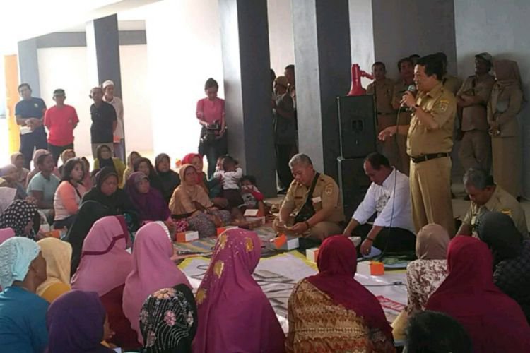 Kepala Dinas Perdagangan Kota Semarang Fajar Purwoto memberikan arahan saat membagi lapak dan kios untuk pedagang di Pasar Tambaklorok, Senin (18/3).. ©2016 Merdeka.com