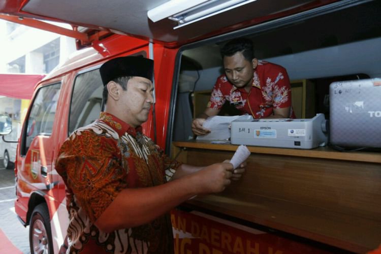 Wali Kota Semarang Hendrar Prihadi melakukan pembayaran pajak dalam acara pekan panutan wajib pajak di Balai Kota Semarang, Senin (14/5) pagi.. ©2016 Merdeka.com