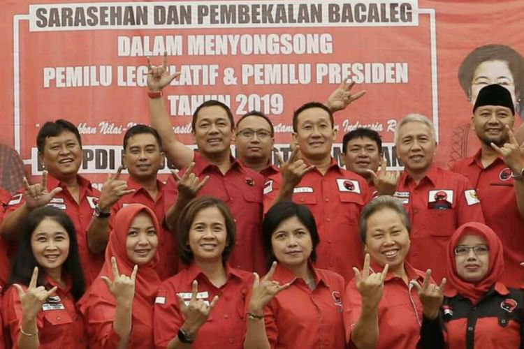 Ketua DPC PDIP Kota Semarang Hendrar Prihadi berfoto bersama calon legislatif PDIP Kota Semarang, Selasa (7/8).. ©2016 Merdeka.com