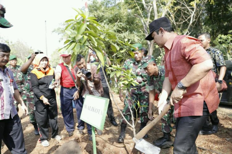 Wali Kota Semarang Hendrar Prihadi melakukan penanaman pohon untuk mengawali program TMMD Sengkuyung Tahap II di Podorejo Ngaliyan Semarang, Selasa (10/7).. ©2016 Merdeka.com
