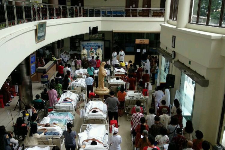 “Mereka itu didoakan agar cepat sembuh dengan didatangi satu persatu pasien sambil didoakan,” kata Humas RS Elisabeth, Probowati Tjondro Negoro.