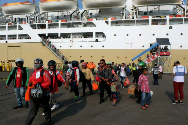 Merdeka.com, Semarang - Sebanyak 1.260 pemudik sepeda motor dari Jakarta dan sekitarnya tiba di Pelabuhan Tanjung Emas Kota Semarang, Minggu (10/6). Menggunakan Kapal Pelni KM Dobonsolo, para penumpang tiba di pelabuhan Kota Semarang itu sekitar pukul 09.00 WIB.