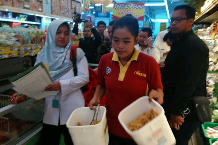 Dinas Perdagangan Kota Semarang menemukan makanan yang melangggar undang-undang saat sidak di sebuah swalayan Kota Semarang, Rabu (30/5).. ©2016 Merdeka.com