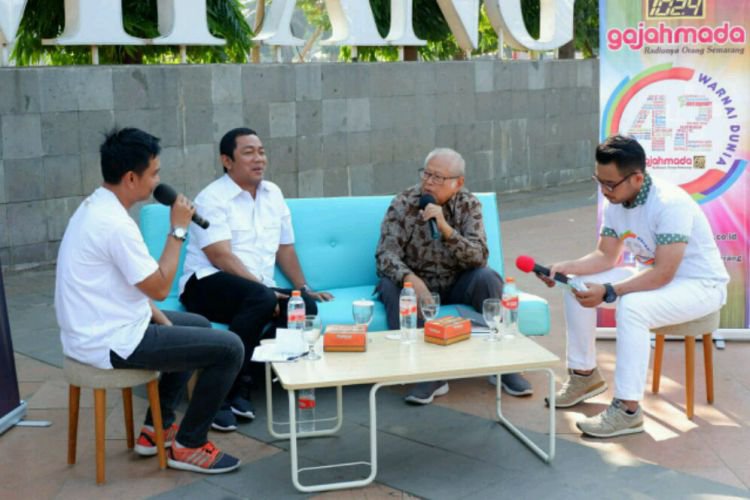 Sejarawan Kota Semarang Jongkie Tio bersama Wali Kota Semarang Hendrar Prihadi menjadi narasumber talkshow tentang pembangunan Kota Semarang, Kamis (26/7).. ©2016 Merdeka.com
