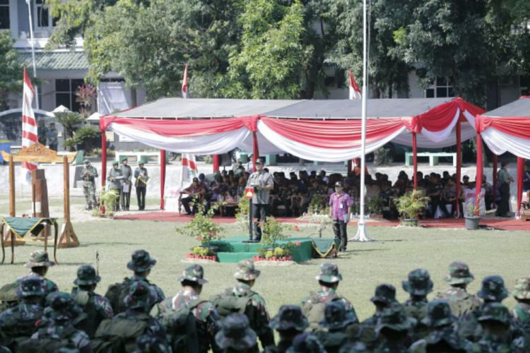 Wali Kota Hendi memimpin upacara pembukaan TMMD Sengkuyung Tahap I di Lapangan Tapak, Mangunharjo Kecamatan Tugu, Selasa (26/2).. ©2016 Merdeka.com