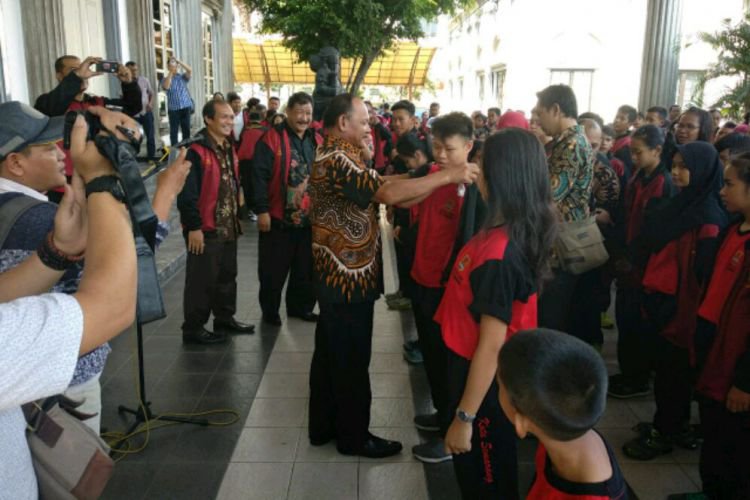 Sekda Kota Semarang Agus Riyanto menyerahkan seragam POPDA Kota Semarang secara simbolis, Kamis (5/4).. ©2016 Merdeka.com