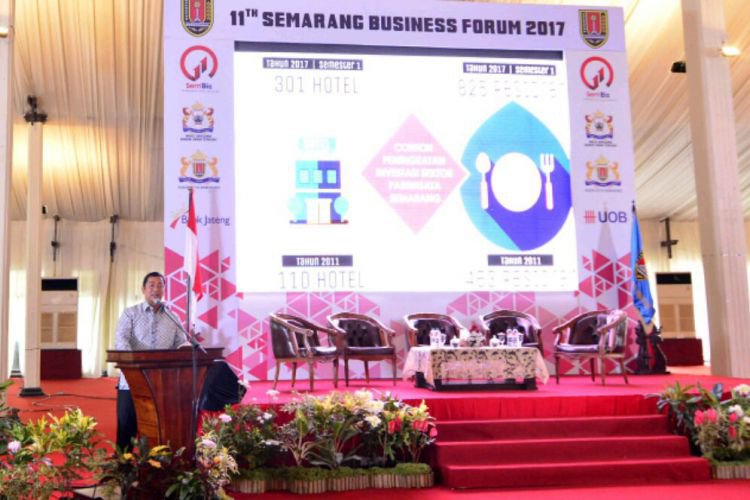 Wali Kota Semarang Hendrar Prihadi memberikan sambutan dalam acara Semarang Bussines Forum, 2017 lalu.. ©2016 Merdeka.com