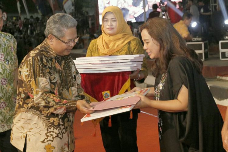 Wakil Gubernur Jateng Heru Sudjatmoko memberikan penghargaan Pembina Terbaik Tingkat Jawa Tengah kepada Ketua Dekranasda Kota Semarang, Tia Hendrar Prihadi.. ©2016 Merdeka.com