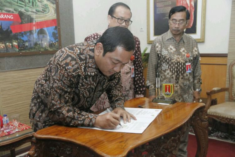 Wali Kota Hendi menandatangani MoU dengan Apindo dan PTS. . ©2016 Merdeka.com