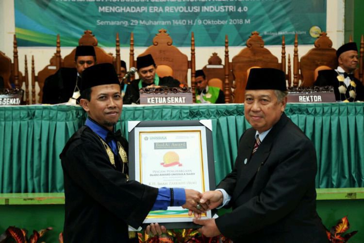 Pemberian penghargaan tersebut diberikan oleh Rektor Unissula Prabowo Setiyawan kepada pihak keluarga KH Imam Zarkazyi di sela rapat senat terbuka pada rangkaian acara memperingati Tahun Baru Islam 1440 Hijriyah di Kampus Unissula, Selasa (9/10).