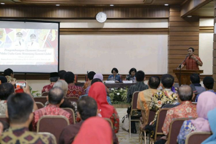 Wali Kota Semarang Hendrar Prihadi memberikan arahan saat membuka program Lomba Ekonomi Kreatif Kampung Tematik Kota Semarang Tahun 2018, Selasa (31/7).. ©2016 Merdeka.com