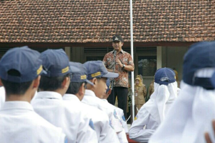 Wali Kota Semarang Hendrar Prihadi memberikan motivasi saat memimpin upacara di SMP Negeri 11, Gajahmungkur, Kota Semarang, Senin (22/1).. ©2016 Merdeka.com