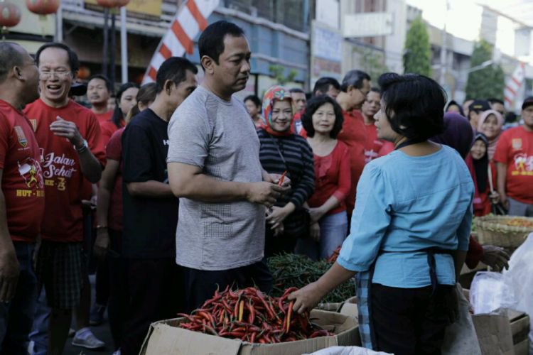 Wali Kota Semarang Hendrar Prihadi bercengkrama dengan warga usai jalan sehat di Kranggan, Rabu (5/9).. ©2016 Merdeka.com