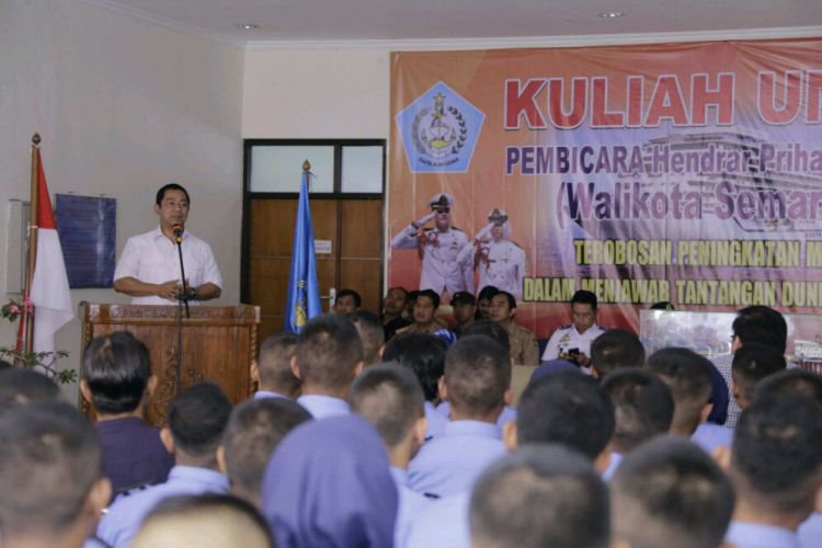 Wali Kota Semarang Hendrar Prihadi memberikan materi dalam kuliah umum di ATP Veteran, Kota Semarang, Senin (10/9).. ©2016 Merdeka.com