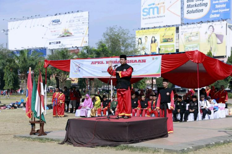 Wali Kota Semarang Hendrar Prihadi memberikan sambutan di hadapan ribuan pendekar Tapak Suci, Minggu (16/9).. ©2016 Merdeka.com