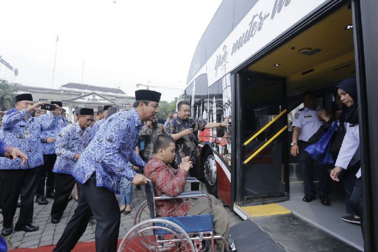 Wali Kota Hendi bersama salah satu difabel mengajak menaiki bus wisata Si Kuncung, belum lama ini.. ©2016 Merdeka.com