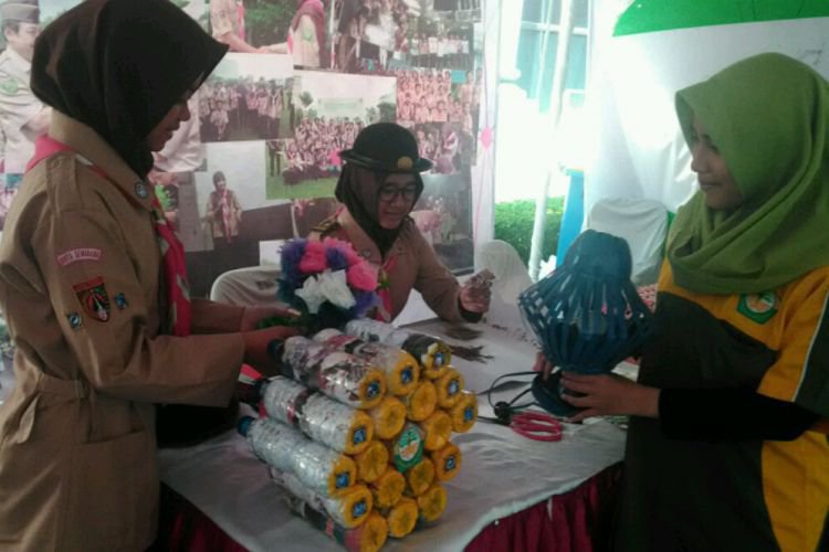Anggota Saka Kalpataru Semarang menunjukkan aneka barang hasil olahan dari sampah.. ©2016 Merdeka.com