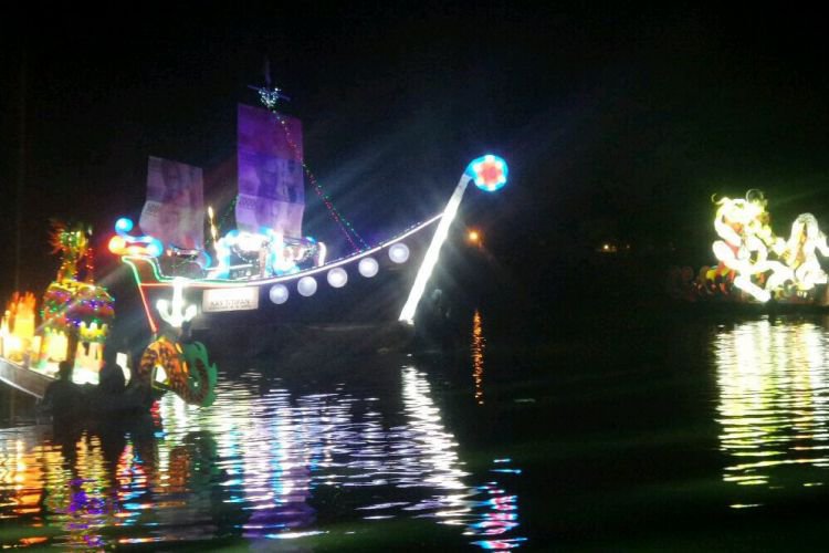 Tak hanya lentera, kegiatan yang diselenggarakan pada malam hari ini juga disemarakan oleh puluhan perahu hias yang tampak cantik memadati salah satu kanal terbesar di Kota Semarang tersebut. Tercatat ada 34 perahu hias ditampilkan dalam penyelenggaraan tahun ini.