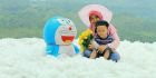 Pengunjung menikmati wahana permainan air di Semarang Zoo.