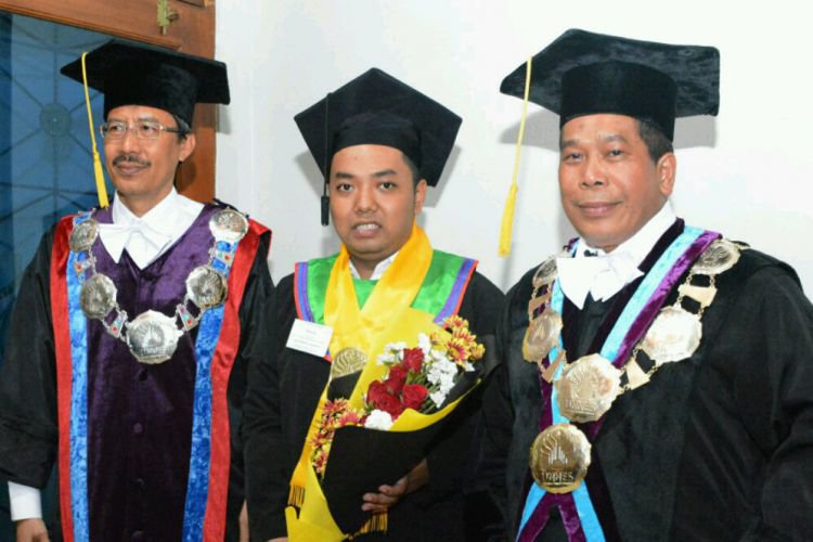 Setiya Aji membawa buket bunga berfoto bersama Rektor UNNES Porf Fathur Rokhman usai diwisuda. Foto/unnes.ac.id. ©2016 Merdeka.com