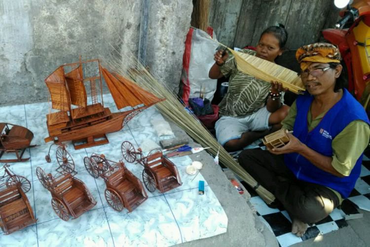 "Awalnya melihat lidi milik istri saya, kemudian saya potong-potong dan rekatkan dengan lem. Tidak menyangka bisa jadi barang seni bagus seperti replika sepeda, becak, mobil-mobilan bahkan perahu layar," terangnya.