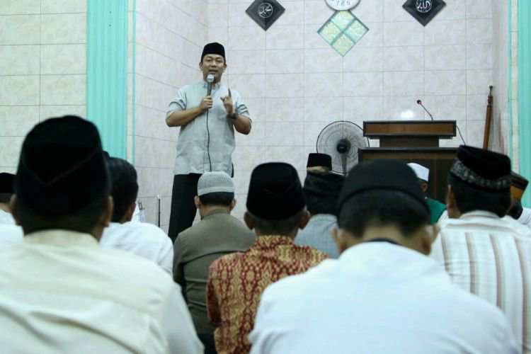 Wali Kota Semarang, Hendrar Prihadi menyapa masyarakat usai melaksanakan salat isya berjamaah di Masjid Jamiâ Al Hikmah Kelurahan Kalibanteng Kulon Kecamatan Semarang Barat.. ©2016 Merdeka.com